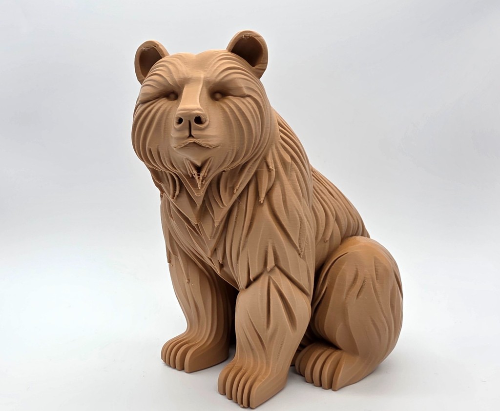 Seated Bear Sculpture - 6 Tall - Wood Carved Style 3D Printed - Caramel Brown