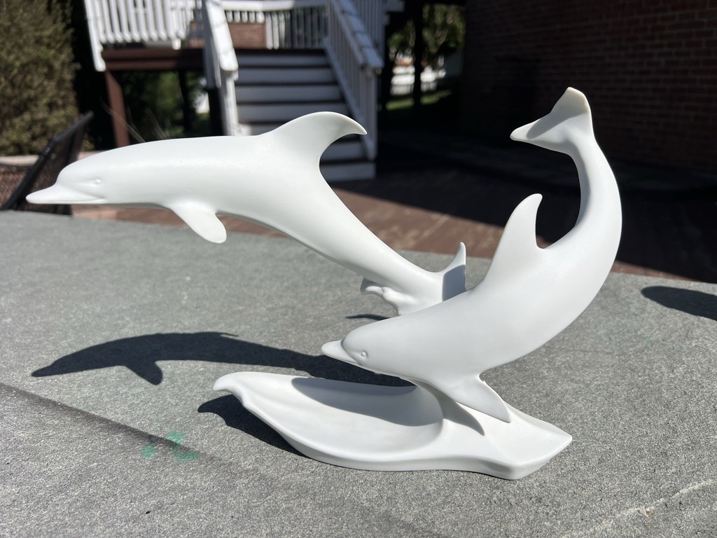 Kaiser Germany Vintage Bisque Porcelain White Dolphins Figure #401