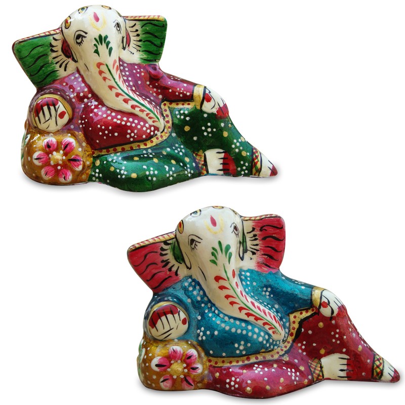 #FreeShipping Jaipuri Hand Made Painted Metal God Ganesha Sculpture (Set Of 2)