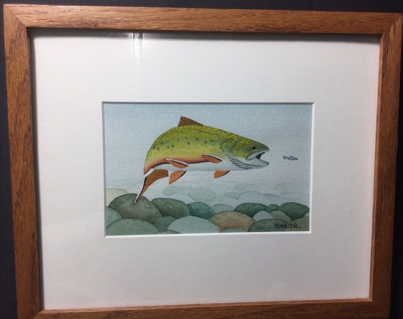 Painting: Larry Stenzel Original Watercolor Fish-Trout Painting Matted Frame ""Brookie""