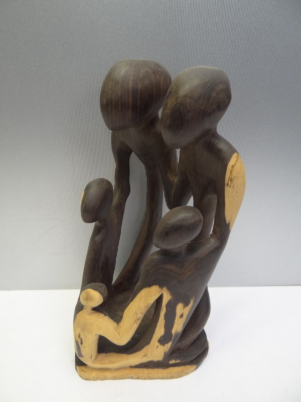 Sculpture: Vintage Hand Carved Wood Wooden Family Heart Shaped Sculpture Figurine Folk Art