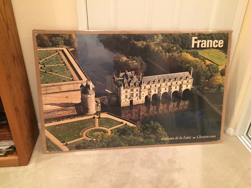 24X38 Vintage Original Landscape Travel Poster Castle France City Bridge Airline