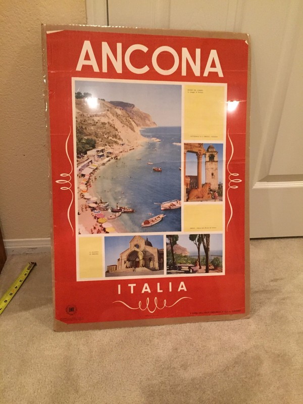 Vintage Original Travel Poster 18X26 Ancona Italy Italia Airline