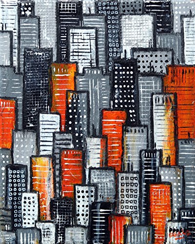 Painting: City Block In Orange And Grey