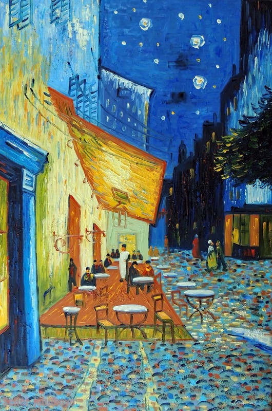 Painting: Cafe Terrace At Night Famous Van Gogh Repro Dining Outdoors 24X36 Oil Painting