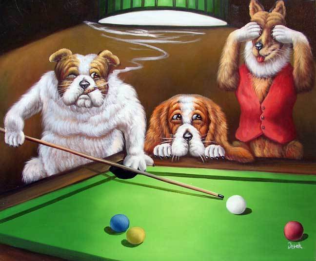 Dogs Playing Pool Classic Pop Art Stretched 20X24 Oil On Canvas Painting
