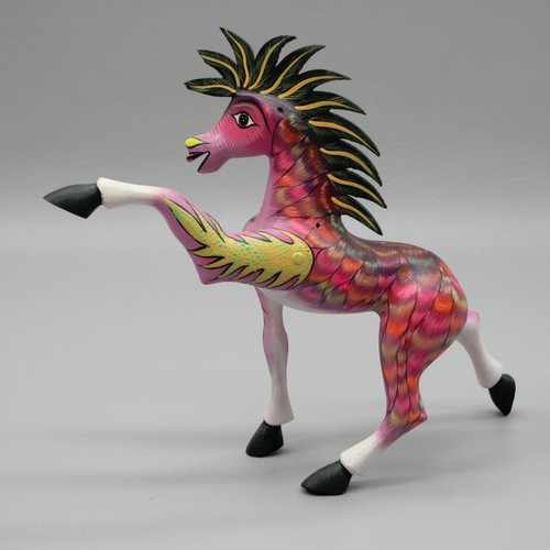 Sculpture: 9"" Hand Carved/Painted Wood Wild Crazy Punk Rock Horse Anime Wooden Sculpture