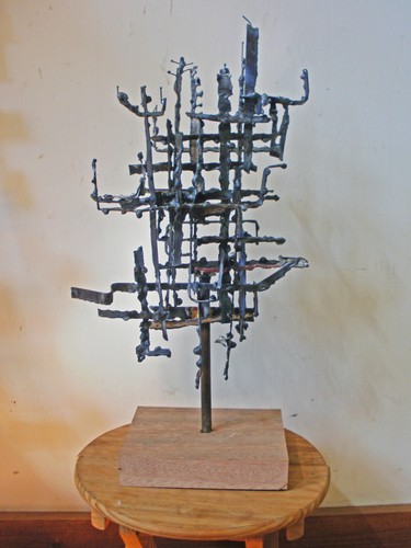 Sculpture: Brutalist Abstract Art Metal Sculpture Mid Century Bertoia Fantoni Torch Cut