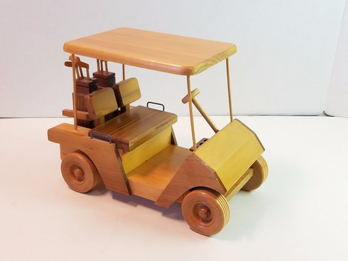 Sculpture: Vtg Wood Wooden Golf Cart Sculpture Art Golfing Decor Hand Made Toy Clubs 10""