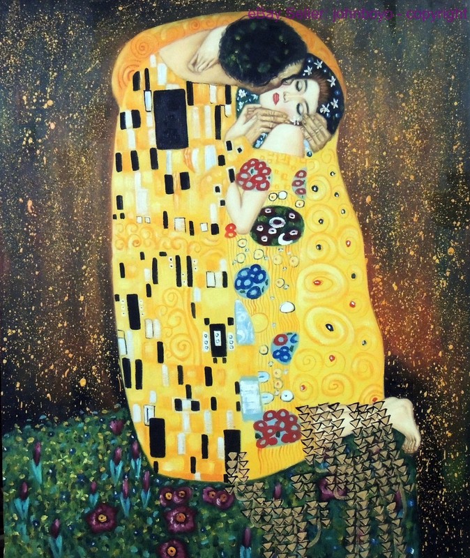 Painting: The Kiss Couple In Love Portrait Gustav Klimt Repro 20X24 Oil On Canvas Painting