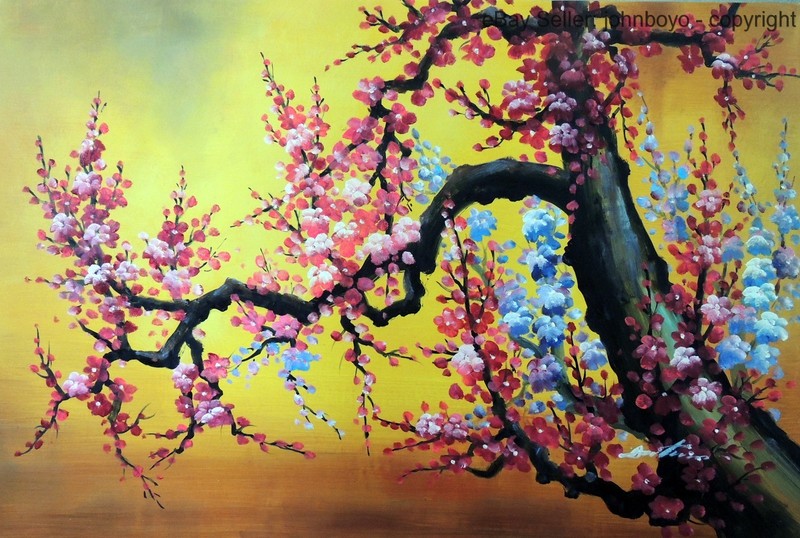 Painting: Cherry Tree Blossoms Flowers Bold Colors Spring Large Oil On Canvas Painting