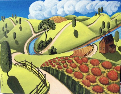 Painting: Original Painting Folk Art Landscape Modern Simplistic Winter Snow Trees Shadow