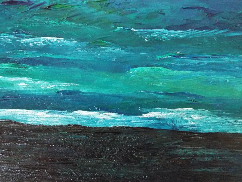 Painting: Blue Green Seascape Original Painting 9""X12"" Direct From Artist Julia Garcia