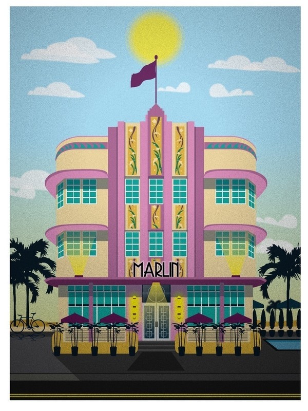 Art Deco Miami Vintage Illustrated Travel Poster Print Framed Canvas