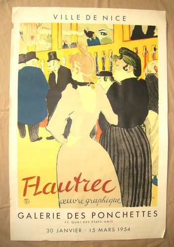 Art Poster: Original 1954 T-Lautrec Exhibition Poster, Galerie Des Ponchettes, Ville De Nice