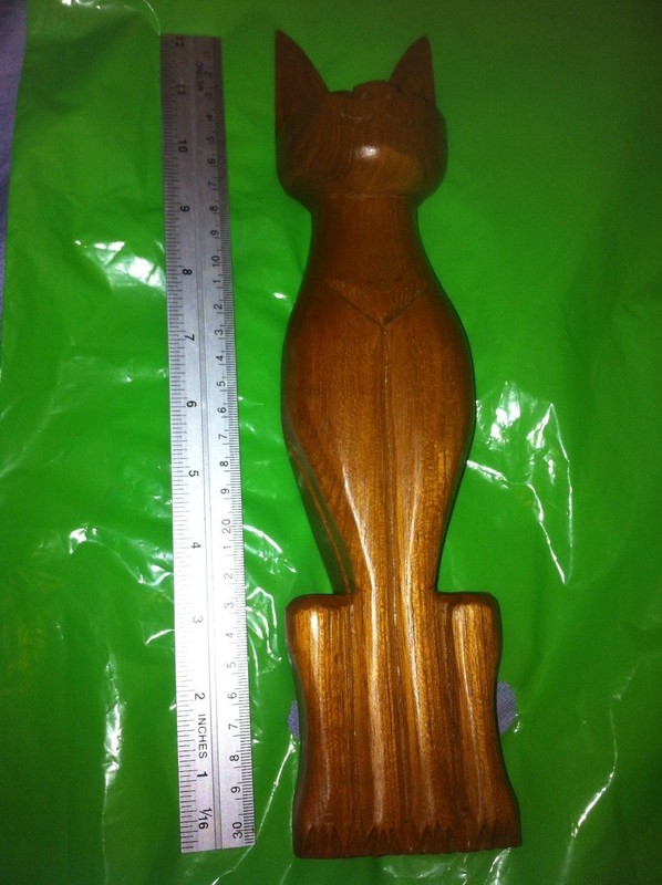 Sculpture: Danish Wooden Carved Feline Sculpture, Nearly 1 Foot Tall