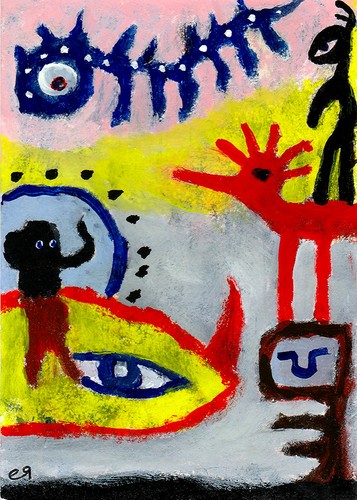Impenetrable Absurdity E9Art Aceo Outsider Folk Art Brut Painting Raw Original