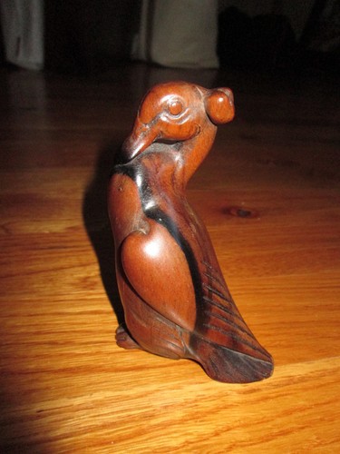 Sculpture: Hand Carved Saur Wooden Duck Sculpture Marked I.W.Ratep, Mas Bali 4 1/2"" Tall