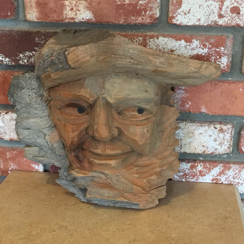 Sculpture: Wooden Hand Carved Face Man Whimsical Art One Piece Wood Hanger Fun Eyes Aafa