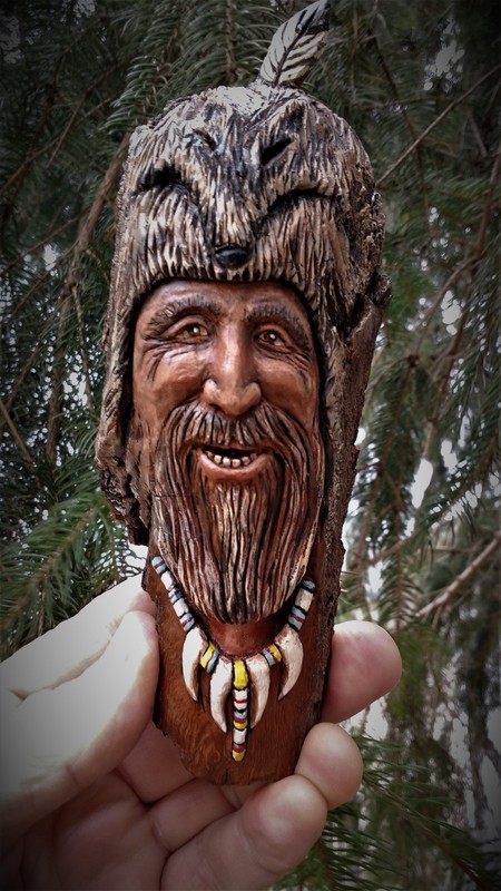 Sculpture: Wood Spirit Carving American Cabin Art Western Old Mountain Man By Jd Rogers