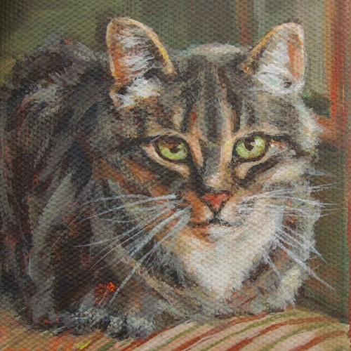 Zanelli Original Daily Painting Tabby Cat On Couch “A Prized Perch” Pet Portrait