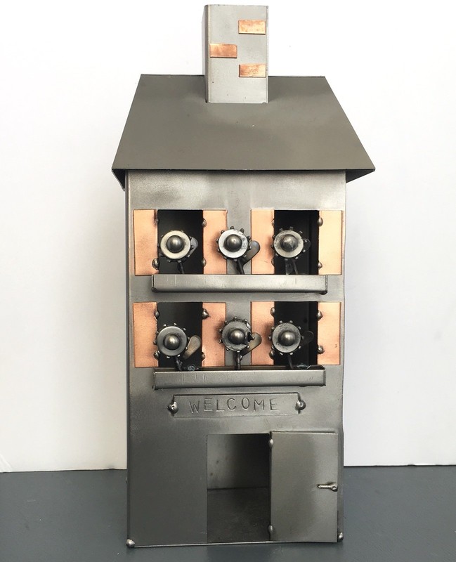 Industrial Metal House Decor Steampunk Wine Holder H & K Steel Sculptures