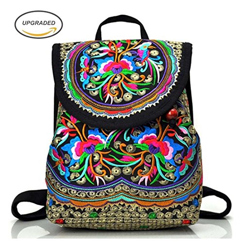 Goodhan Vintage Women Embroidery Ethnic Backpack Travel Handbag Shoulder Bag Mochila