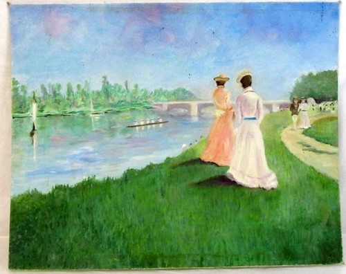 Canal Landscape Artist Signed Impressionist Style Painting 16'x20'