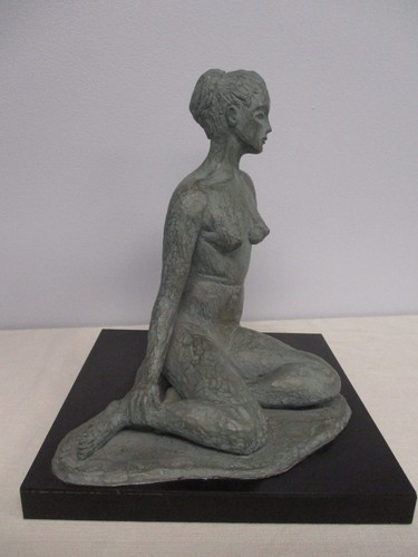 Sculpture: Mid Century Signed p.r.g. 1966 Ceramic Nude Sitting Woman Sculpture Lucite Base