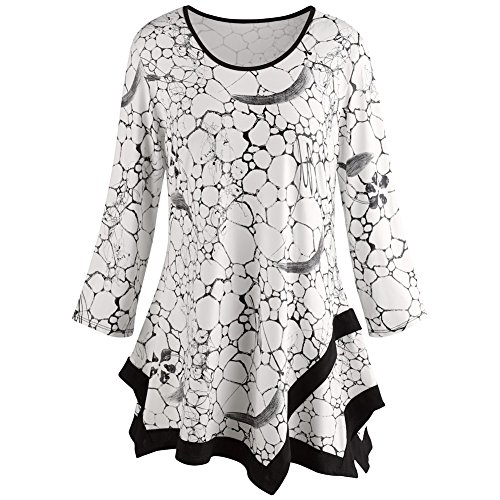 Fashion: Womens Tile Print Tunic Top - Black And White Print Fashion Blouse - Large