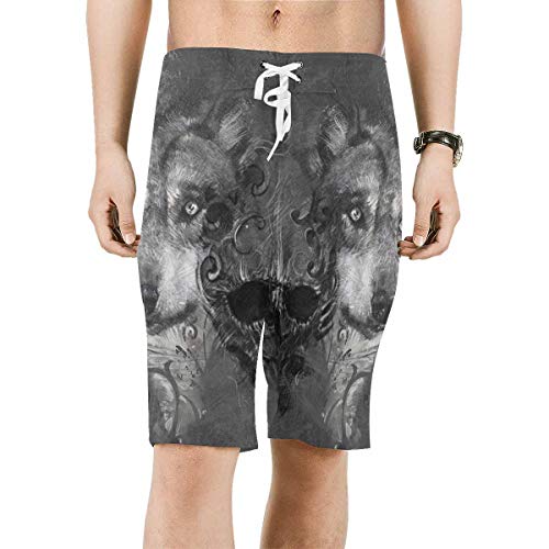 Mens Printed Board Shorts Water Beach Shorts Artistic Wolf Skull Xx-Large