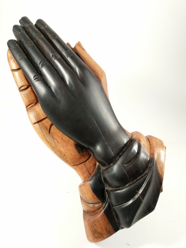 Vintage Hand Carved Wooden Hands Praying Hands 10 Inches Tall. Two Color Wood
