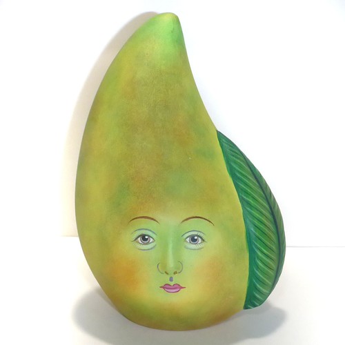 Sculpture: Alexander Flores 7 Tall Mango Ceramic Sculpture With Hand-Painted Face