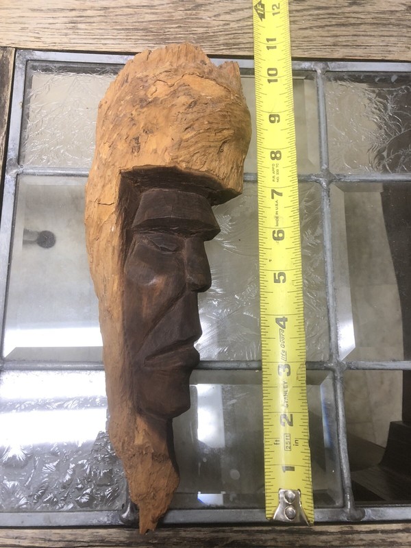 Sculpture: Wood Spirit Carving Native American Indian Chef Head Bust Wooden Vintage Antique