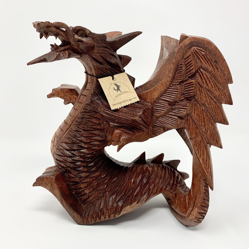 7 Hand Carved Wooden Dragon Statue Sculpture Figurine Art Home Decor Wood