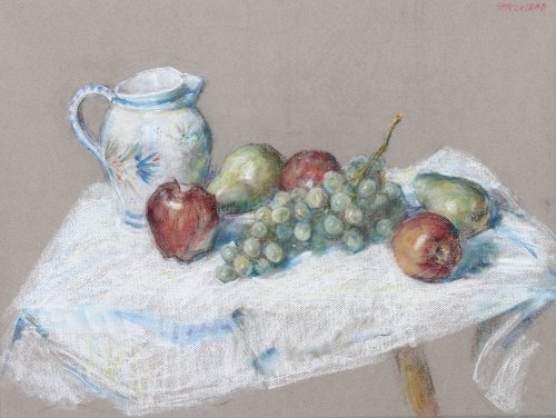 Drawing/Sketch: Still Life With Fruit And Pitcher