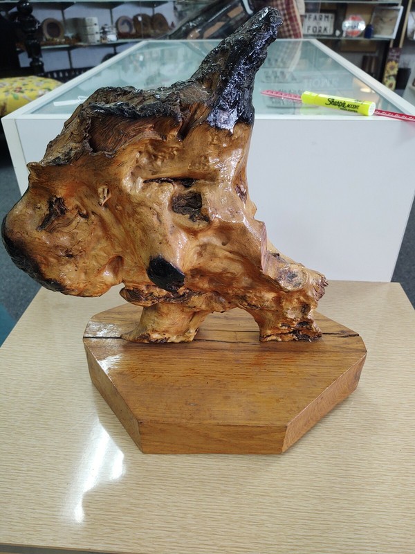 Natural Burl Wood Art Mounted On Wooden Base, Unique!