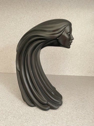 Ceramic Womans Face Wave Long Hair Wind Sculpture 12In