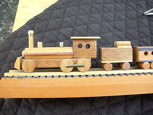 Vintage Folk Art Handmade Wood Train Set On Wooden Track