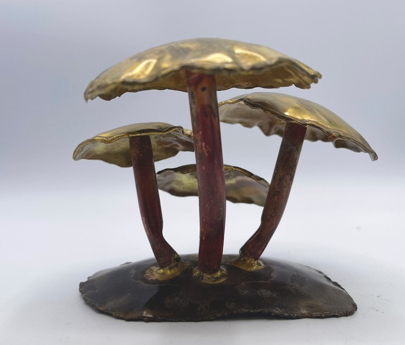 Vintage Metal Copper Mushroom Toadstool Sculpture Magical 4 X 4 Ooak Brass
