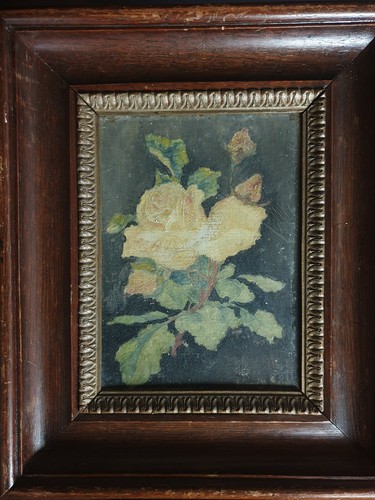 Antique Signed Painting Oil Plywood Flower Still-Life