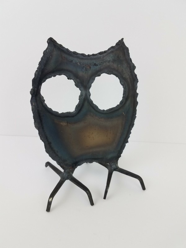 Mid Century Modern Metal Brutalist Owl Sculpture Signed Irvine 5.5 X 4