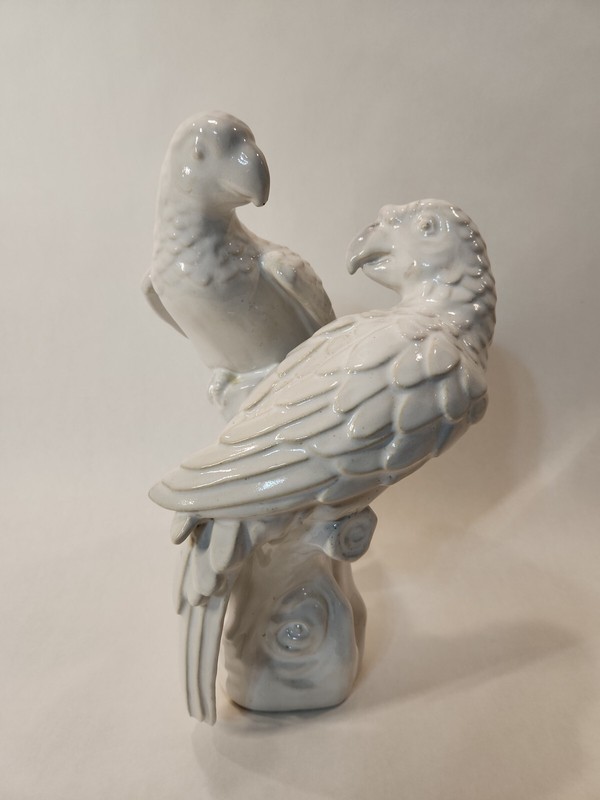 Ceramic Porcelain Loving Parrots Bird Art Sculpture - Very Detailed