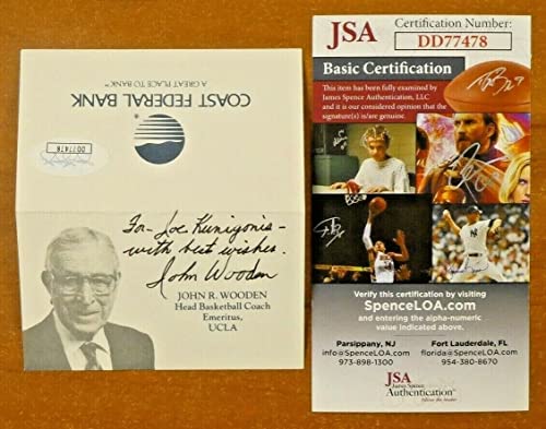 John Wooden For Ucla Basketball Coach Autographed Signed Card JSA COA