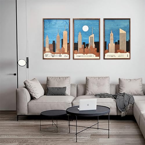 Wooden Wall Art Decor, New York City Skyline 3D Wood Shadow Box Triptych Laser Cut Handcrafted Etched, Inlaid Empire State Building The Big Apple NY Art