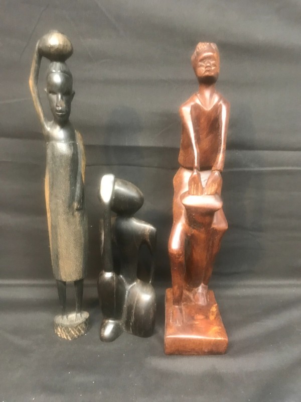 Three Wooden Hand Carved African Statues, Tribal
