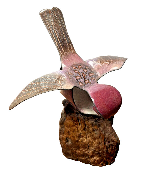 Norman Brumm Copper Art Sculpture Figurine Bird Mauve Enamel Vintage Wood Metal