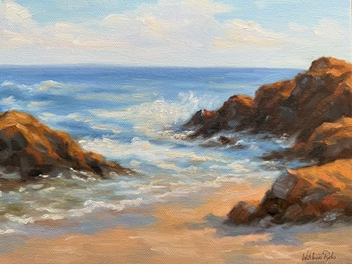 Original Oil Painting on Canvas Mediterranean Seascape, Rocky Beach, Ocean View, Hand Painted Fine Art, 9x12 in (24x30 cm), Coastal Marine Landscape