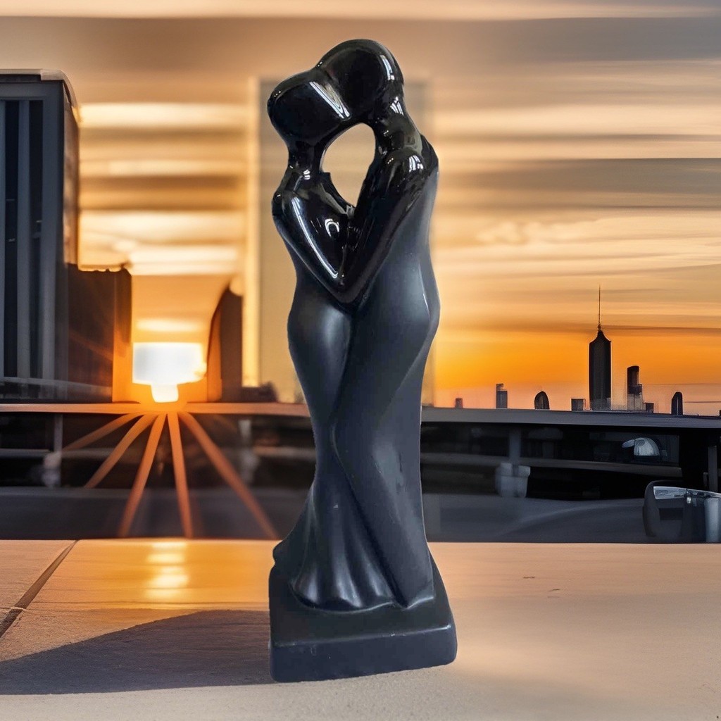 12.5 Vintage Art Nouveau Black Finish Ceramic Couple Dancing Kissing Statue