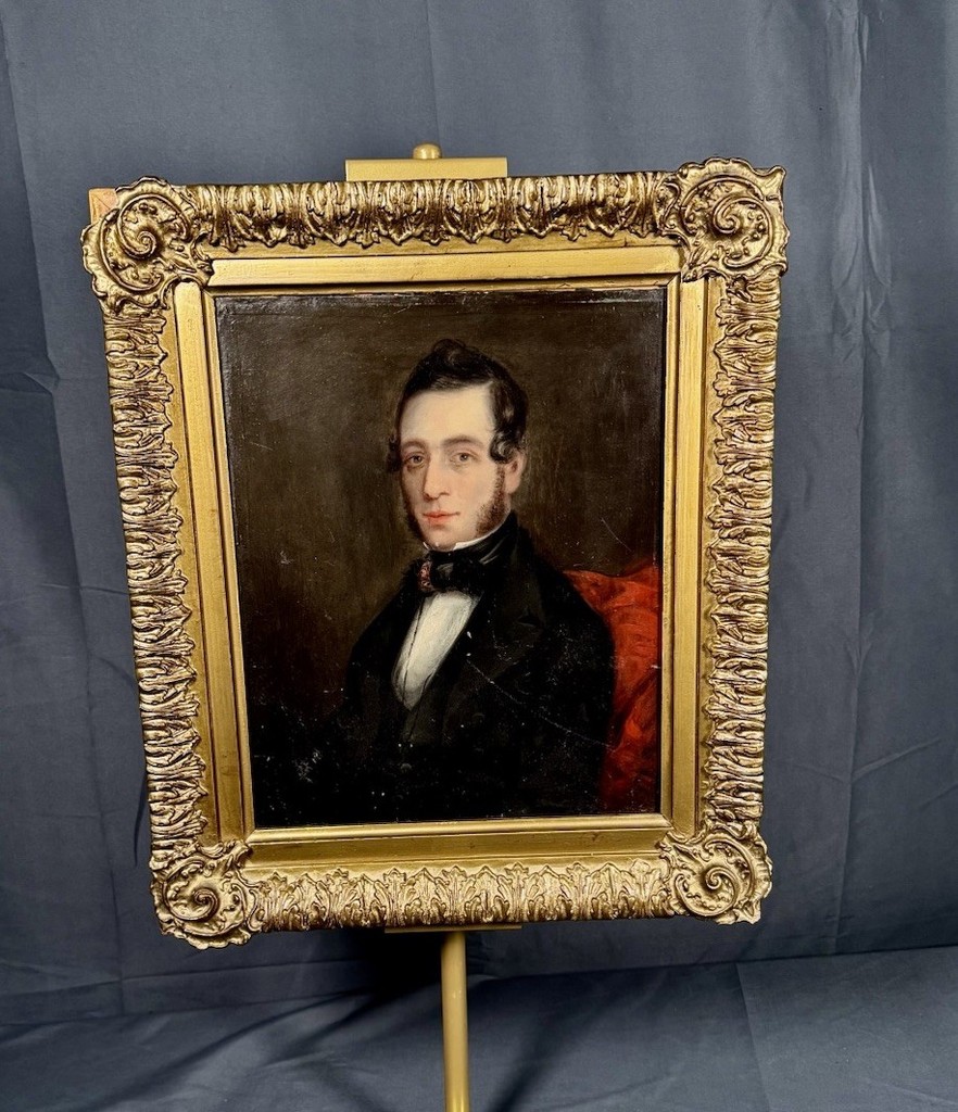 Antique American 19th Century Gentleman Portrait Oil Painting Gilt Frame